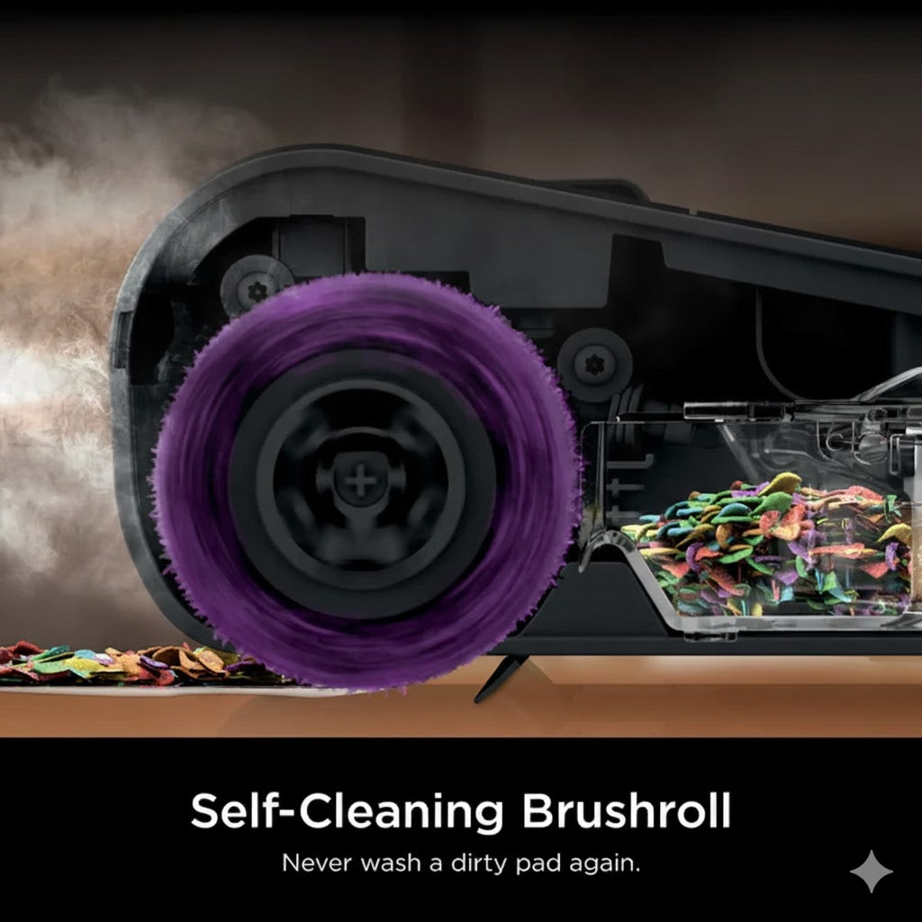 Features a self-cleaning brushroll that continuously clears itself of dirt and grime without spreading the mess, so you never have to clean with a dirty mop pad again.